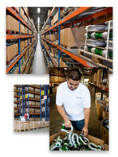 Los productos Green Pin® se inspeccionan y almacenan en el centro de distribución principal en Sliedrecht, los Países Bajos, que está ubicado a 30 kilómetros de Róterdam. En Róterdam se encuentra el principal puerto marítimo de entrada a Europa, con conexiones navegables a los principales centros comerciales de todo el mundo. El centro de distribución tiene una superficie de 6.000 m2 (65.000 pies cuadrados) de espacio de almacenamiento para equipos de elevación y amarre.
